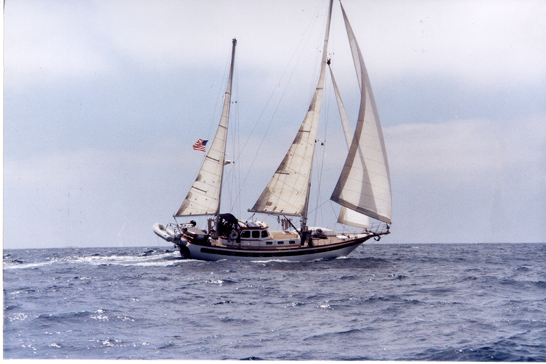 We headed over to a safe harbor on the south end of Tahaa. We spent two glorious days doing nothing but getting sun and reading. Then we went to Raiatea to pick up my friends Keith Ball and Toby. Keith has been the editor of Easyriders for the past 27 years, and Toby is from Massachusetts. I’ve known Keith for 20 years, and when I started to plan this trip it was when he and I were sailing over to Catalina for a weekend. The original plan was for him to join me for the whole trip. Then he was to sail with me for three or four months. Then it was 10 to 15 days. He finally came, and stayed for six days.