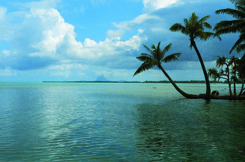 It comes to mind that I have not really covered a typical day on an island in paradise. As we drove around Raiatea it came to me just how foreign a way of life it would seem if I were back home. As we left Huahine, we could see Raiatea and Tahaa across the 26-mile channel. Then, as we were sailing across, we saw Bora Bora rising in the distance, another 18 miles farther on. When we entered the lagoon that surrounds Raiatea and Tahaa, we headed to the Moorings Marina, where we picked up a mooring. In the morning, we rented a car. It was raining and we needed some supplies, so we headed to town, and then drove around the island. As we drove, we watched the side of the road for certain trees. We got a stalk of bananas off a tree on the south side of the island, and then found a good papaya tree with some almost ripe fruit. When we stopped at a beach to check out a small island that was about 25 feet around (no kidding) and had three palm trees growing on it, we saw some coconuts and grabbed them. The only thing we didn’t find was any pamplemousse trees, and they are my favorite, but tomorrow is another day. After we drove around the island we headed into town to watch the start of an around-the-island bicycle race. Then it was back to the boat, where Jody made cookies and the rest of us kicked back and read. It’s a tough life out there.