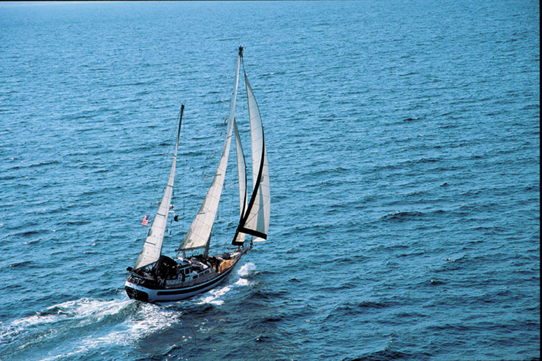 We were 300 miles above the equator and other than a bunch of squalls around us we were having a pretty good crossing. Actually, a couple of days ahead of schedule, but that could change at any time. During the midnight watch we were hit by something I’d never experienced before. We were doing about seven to eight knots under 15 knots of wind off our stern quarter, when all of a sudden a squall came up. After a few minutes, Andy had to get up and help with the wheel, as the autopilot wouldn’t do its job. Anyway, about 30 minutes into this screaming meanie something grabbed a hold of the boat and knocked her flat on her side. All of a sudden we were looking at the world from an all new perspective—lying on our backs. No “Excuse me” or “Hey buddy, would ya mind?” just a full-on knockdown with the boat lying over on her side for a couple of seconds.