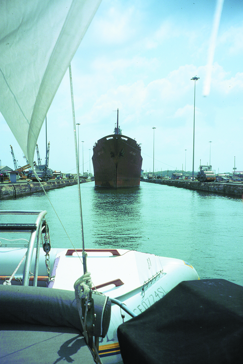As we approached the notorious Gulf of Tehuantepec we started to group with a few other cruisers heading north. The Tehuantepec is an area that is known for vicious storms popping up out of nowhere. It is the narrowest point in Mexico and there is a natural venturi effect when there is a high in the Gulf of Mexico that generates winds up to 100 miles per hour out of nowhere. The southern end of the Tehuantepec is Puerto Madero, and as we entered we found AZURA, ARIES II, BLUE IBIS and BITTERSWEET waiting out a storm. We joined them and waited. The afternoon of April 11 Herb on SOUTH-BOUND II out of Canada broadcast on the SSB that we had a two-day window. You’d have thought they were giving away free beer across, as all of us hoisted anchor within an hour of the all clear, and as the sun set over the Tehuantepec we all went to sea. It was all clear, and the five boats kept in touch by radio all through the night, waiting to see if we’d get hit by a surprise wind. By noon the next day we knew we’d made it through the hole and a collective sigh was heard all over the Tehuantepec.
