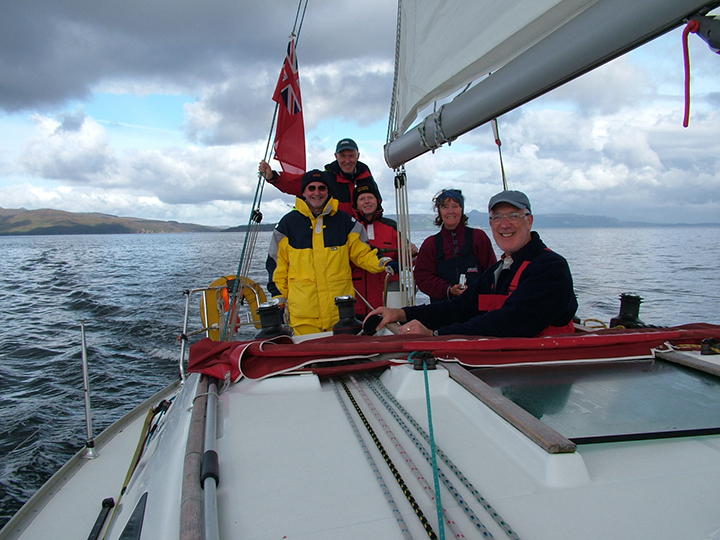 Colin Blane at that time one of Scotland’s BBC top reporters was our skipper that day. I’d nominated Chris (CJ) Gardiner to navigate during this passage. CJ was an ex-BA long haul pilot; who’d started off flying RAF Vulcan’s as Briton’s nuclear deterrent during the cold war. Some of his amazing tales from those days brought many of us to tears; they were almost beyond believe. They both seemed to blend and worked together well. As we approached this tiny gap between these islands after some 50 miles offshore.