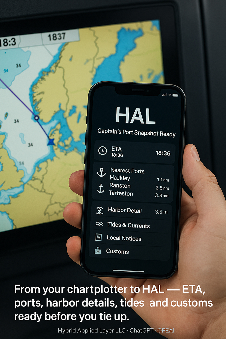 HAL is not a chartplotter or navigation system—it is a text-based assistant, a captain’s autopilot for navigational information. Running inside ChatGPT, HAL controls the time, sources, and data it uses, ensuring that answers are valid. It is based on curated government sources, maritime-specific, and up to date. It is an AI assistant to the captain, not a chartplotter or navigation system. An excellent nav data fusion system for mariners.