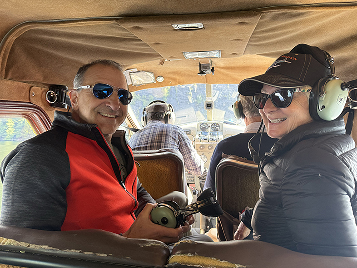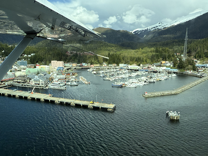 We arrived early in the morning at Ketchikan, our last port in Alaska. All four of us got off the ship and, on our walk to town, came across a guy selling airplane tours. He was a real character—and a good salesman. Too good! Jody & I would normally have passed him by, but Jeff & Debbie stopped to listen. Before long, we were in an aviation base, boarding a plane that looked like the Wright Brothers might have been its first pilots. At first, we thought the shiny new plane on the tarmac would be ours—but alas, we were wrong. The good news: our pilot had just bought a sailboat and knew of our old magazine Lats & Atts. Once we were up in the air, he took us to places most folks never see. If you go to Alaska, you have to splurge on the floatplane ride—it’s just amazing and gives you perspective on the beautifully harsh land and how tough it must have been to settle.