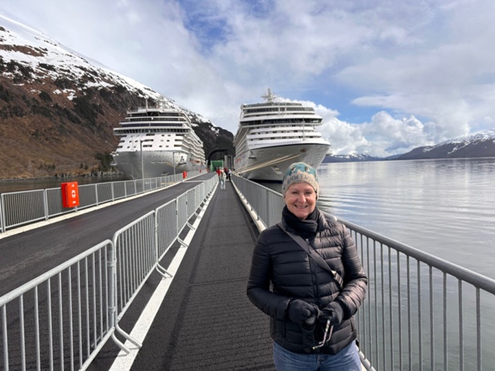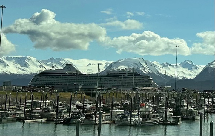 Next stop: Anchorage—well, really Whittier, Alaska, with Anchorage an hour’s bus ride away. Unlike our last two stops, we were one of only two boats in the harbor. The scenery was beautiful, with snow-capped peaks, waterfalls, and a serene coastline. Debbie and I decided to go off on our own and hike a few miles to a glacier. Afterward, we walked along the shoreline and soaked up the fresh Alaskan air and stunning views. Bob & Jody once again stayed aboard, enjoying the decadence of the Oceania Riviera. The gym, steam room, and hot tub had become a daily ritual while at sea, so they stayed aboard, figuring Jeff & Debbie would report back with any excitement. After all, decadence may not be a way of life—but it works for us!