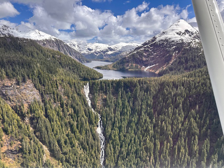 Flying through snow-covered peaks and diving into brilliant blue fingers of the ocean, we truly felt like we were in the last frontier. A highlight was when the pilot landed on a lake, and we all got out to walk around—exploring a place untouched by man (or woman!).
