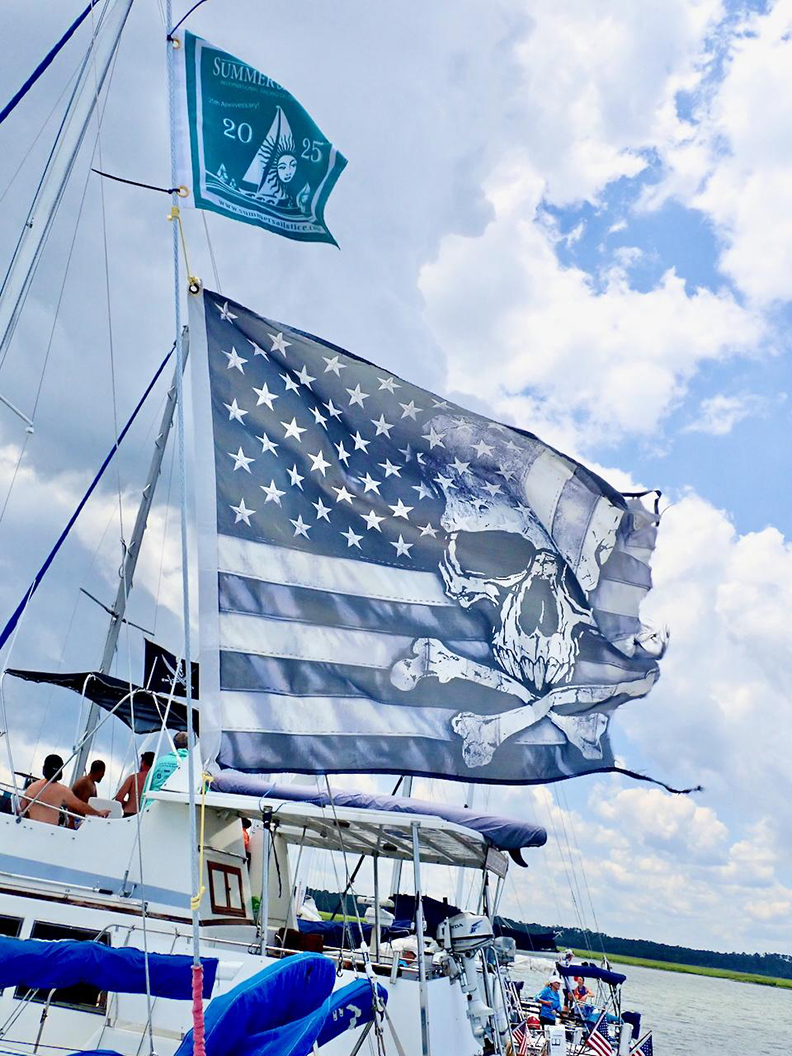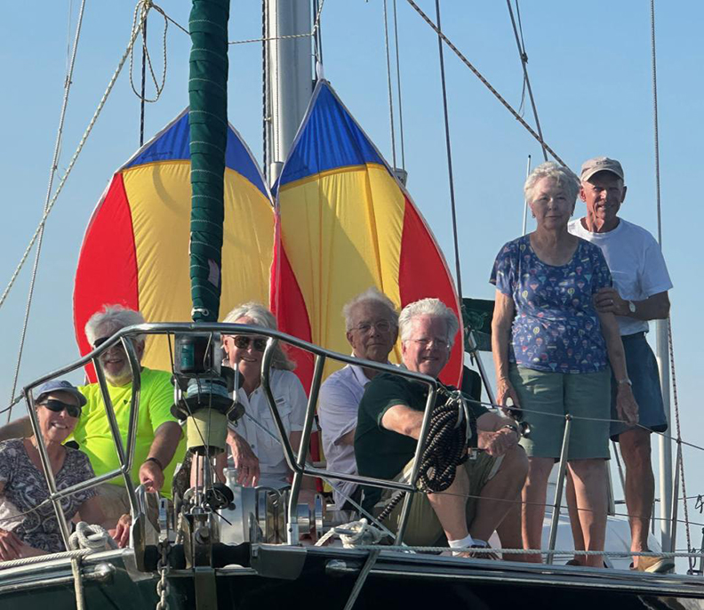 Chatham Sailing Club, Wilmington Island, Georgia, is a three-peat winner, having won the honors in 2023, 2024 and now in 2025. They had 13 boats (12 at any given time) plus one sail-by from another club. This year’s celebration included 2 dogs, 2 kids, and at least 40 adults!