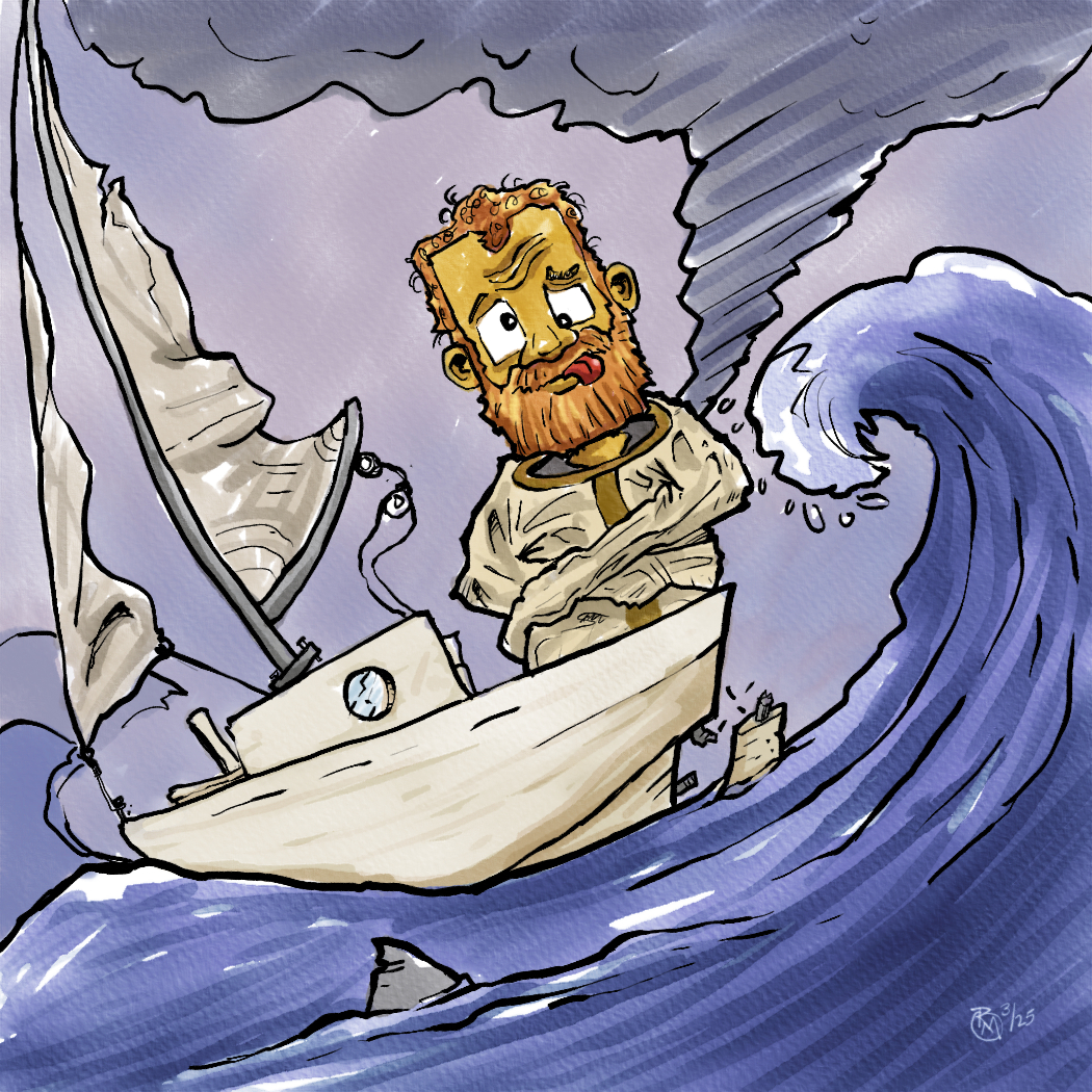 But that ain’t even the half of it. To make it a little more fun, how’s about we jam a couple of sticks in the vessel, and tie on a bedsheet or two. What kind of idiot can actually believe he can make twenty or so tons of plastic and steel go across an ocean with just windpower?